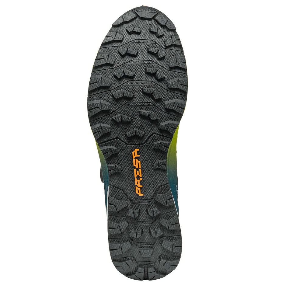 Podešev SCARPA PRESA® je vyrobena z vysoce výkonné gumové podešve se 4 mm dropem a vynikající přilnavostí na suchém i mokrém povrchu. Testováno těmi nejlepšími v technických a nerovných terénech