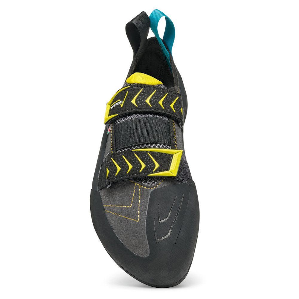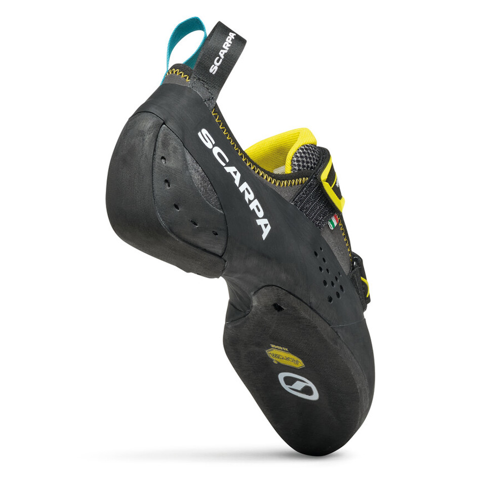 „Tato všestranná lezečka nabízí vysokou přesnost jak v soutěži, tak v horolezectví. VIBRAM® XS Edge zaručuje optimální přilnavost a pružnost i pro nejmenší chyty. – Cédric Lachat