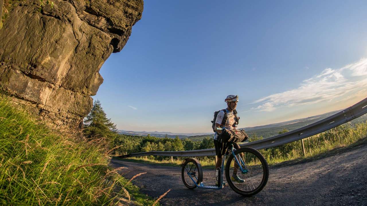 99 rok mě trošku obrátil život naruby. Havárka a spousta zranění mě obsadila do trochu jiné role. Že jsem přišel o ruku a nějaký orgány – i tak se dá žít. A zase přišly výzvy. Horské kolo, první závody, úspěchy i pády z kola. Uchvátilo mě i potápění, ale do správných pekel mě poslal až ultramaraton 1000 mil. Non stop závod bez zabezpečení – a závod mám nakonec za sebou na kole, koloběžce i pěšky.