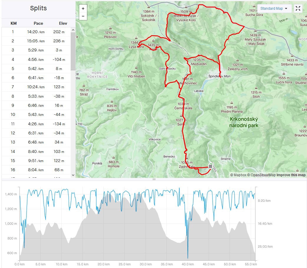 Místo startu a cíle: Herlíkovice, parkoviště pod lanovkou na Žalý, Krkonoše, Česká republika
