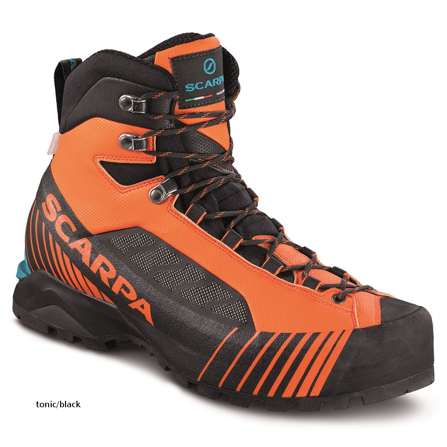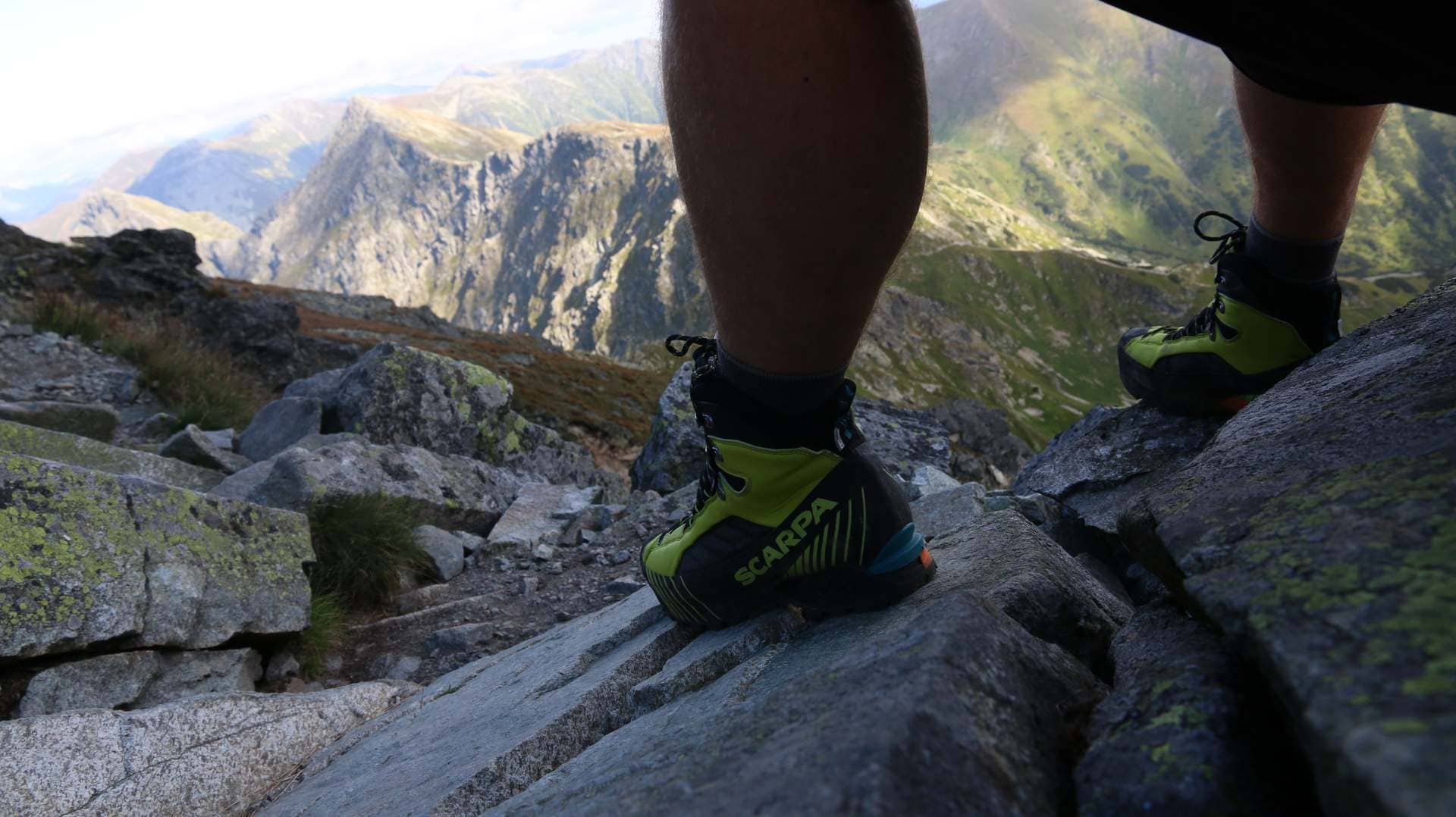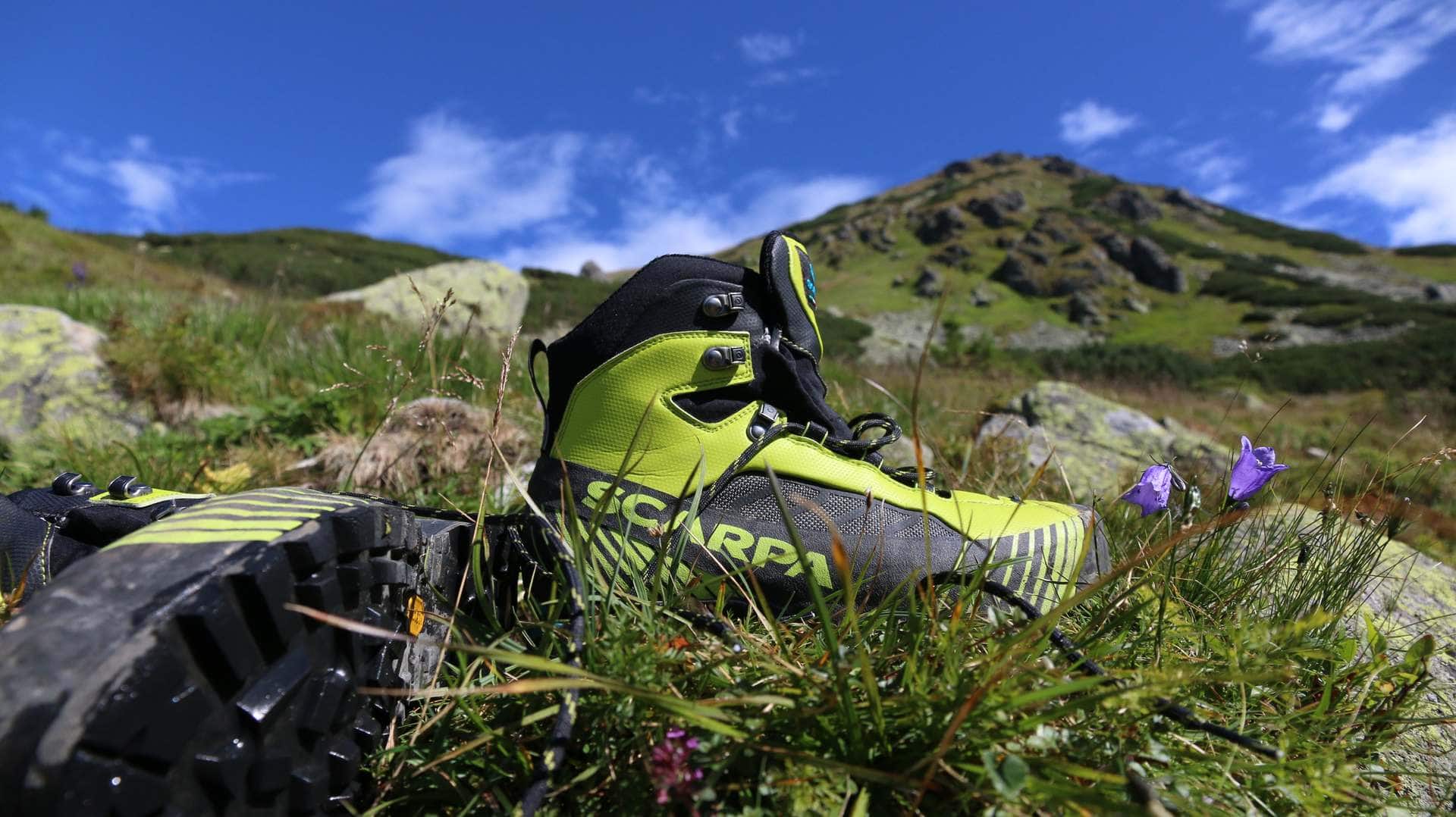 Má Scarpa pod svým logem – „žádné místo není daleko”.  V tomto případě i kudykoliv. Co totiž zaujme už při prvním pohledu je masivnost celkového gumového okopu. Ten i v tom nejtěžším terénu dokonale ochrání vaši nohu, celou botu a nenechá se zastínit ani mačkou (včetně poloautomatu). Tady bych znovu připomněl váhu 650 g! 🙂