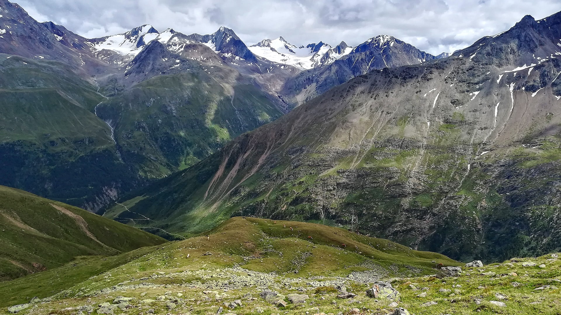 Plánujeme zítřejší návratový den. Těžce se mi údolí Ventu opouští. Nabízí se tu tolik cest a vrcholů bez davů turistů. Loučím se pohledem k jižním vrcholkům značícím Italsko-Rakouskou hranici s dominujícím Weisskugel 3.738 m (třetím nejvyšším vrcholkem Rakouska).