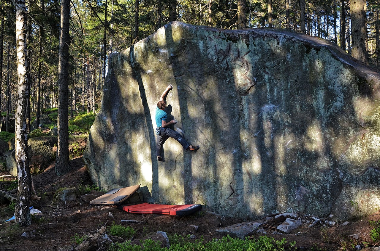 Za tu dobu, čo bouldrujem, sa mi podarilo vyliezť kopec krásnych problémov v lezečkách SCARPA Instinct VS, ktoré som striedal s mäkšími SCARPA Furia. Vždy som si vyberal lezečku podľa charakteru bouldru a stupov.