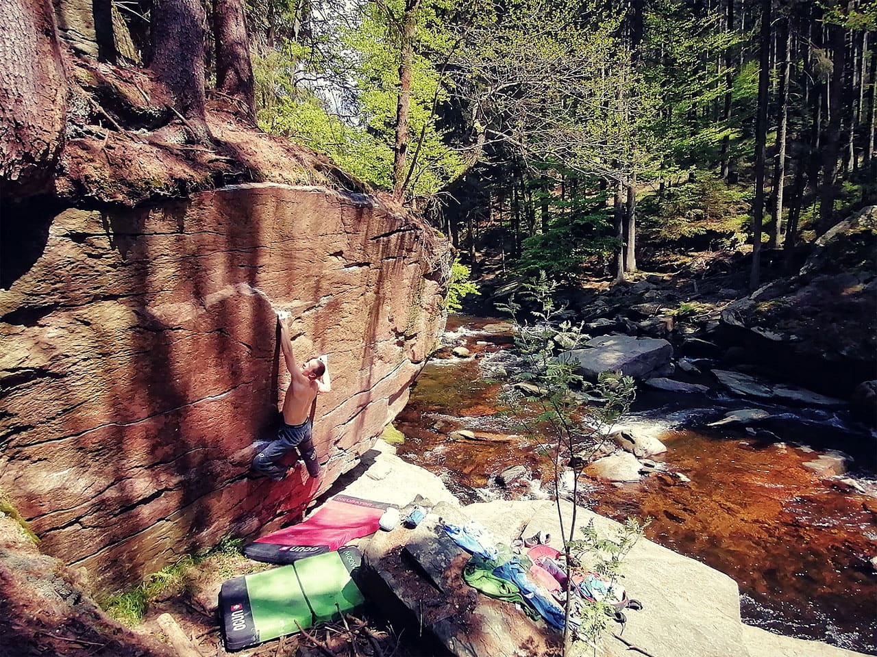 Vzal som bouldermatku a vydal sa do lesa na miestne skalky trochu si zabouldrovať, preto že som nemal ako vždy parťáka na lano. Pobehoval som po lese ako urvanej z řetězu! Zrazu som cítil, že to je presne to, čo som už dlhú dobu hľadal, a čo mi asi chýbalo? Hra! Detská hra! Žiadne veľké oči a veľké ciele. Proste sa dokázať zabaviť na pár metrovom kameni a mať z toho radosť! Večer som sa vrátil domov spokojný a šťastný ako keby som našiel stratenú múzu…